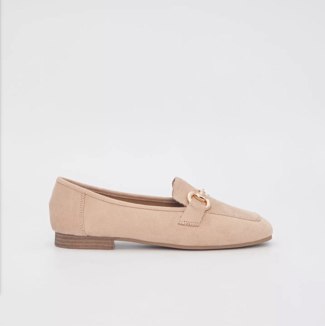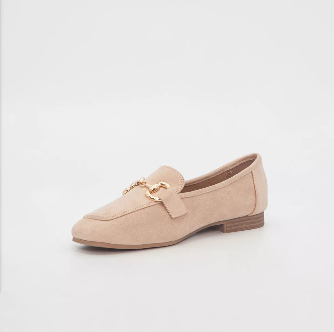 Komfortable loafers I semsket skinnimitasjon med gullspenne på overdelen.