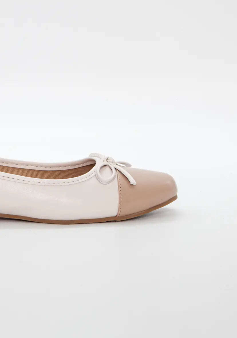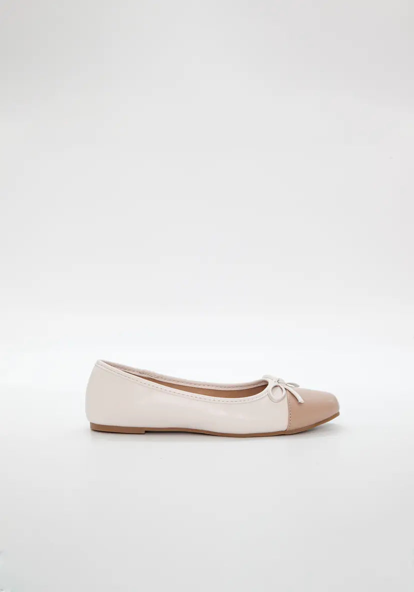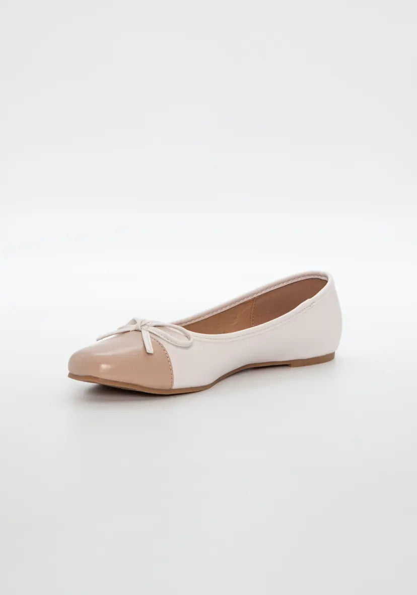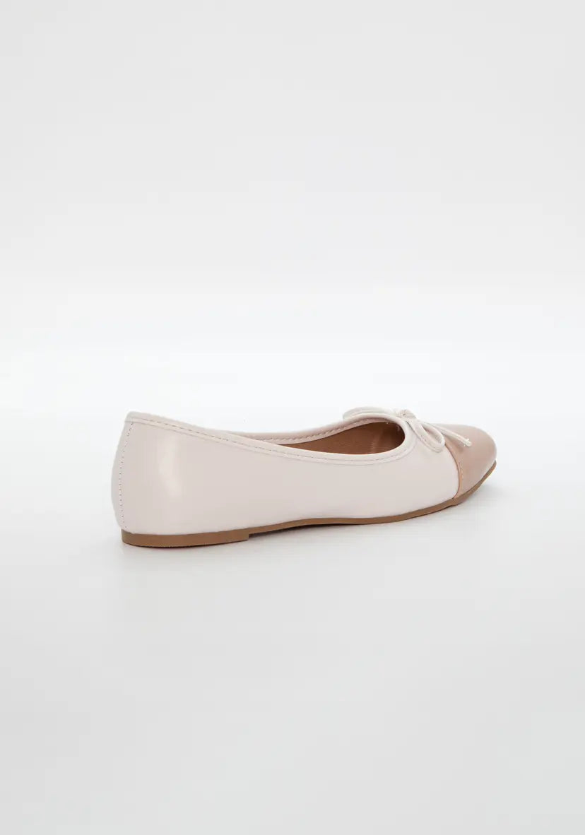 Den klassiske ballerinaen med rund tå, laget i vegansk skinn og pyntet med en søt sløyfe foran. En elegant og komfortabel sko som løfter ethvert antrekk – enten du skal på jobb, ut og spise eller bare nyte sommerdagene i byen.