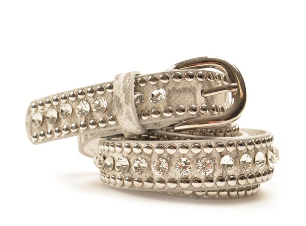 Belte 3 cm shiny m/ studs - Sølv/hvit