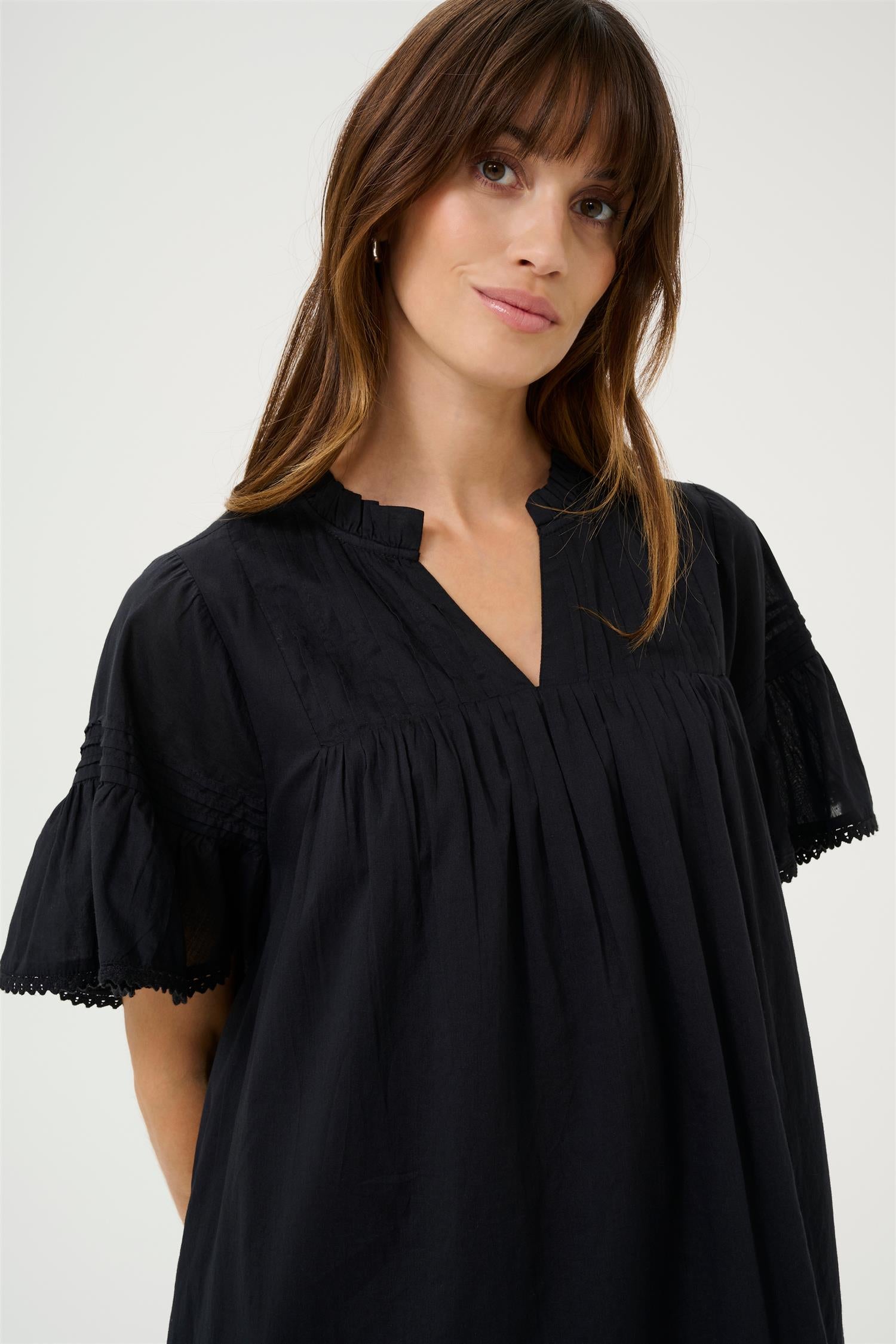 Hos Tove tilbyr et bredt utvalg av kjoler som kombinerer tidløs eleganse med moderne trender, perfekt for både hverdag og fest. Uansett om du ser etter en klassisk kjole til formelle anledninger, en luftig sommerkjole eller en elegant festkjole, finner du det hos oss. Vi fører kjoler fra kjente merker som Culture, 2Biz, Ane Mone, By Basics og mange flere, slik at du kan være sikker på å finne høy kvalitet og unike design.