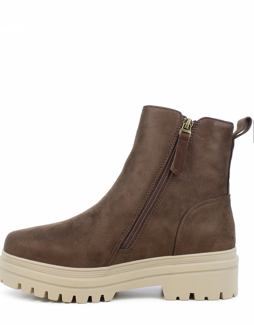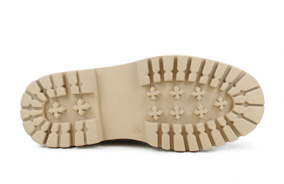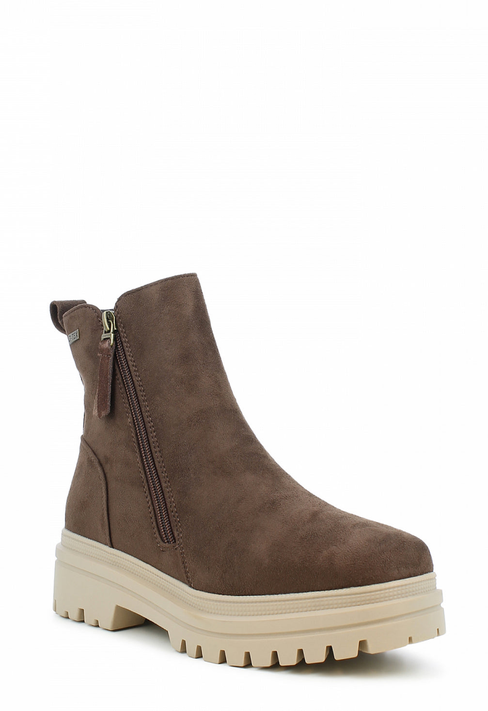 Disse bootsene har både en indre og ytre glidelås som gjør dem enkle å ta av og på. Overdelen er laget av vannavstøtende semsket imitert skinn med en D-tex membran som beskytter mot fuktighet. De har en gummisåle for godt grep, en behagelig passform og fleecefôr som gir ekstra varme. Bootsene er i tillegg utstyrt med en patentert anti-skli hældel for bedre stabilitet på glatt underlag, noe som gjør dem ideelle for vinterforhold.