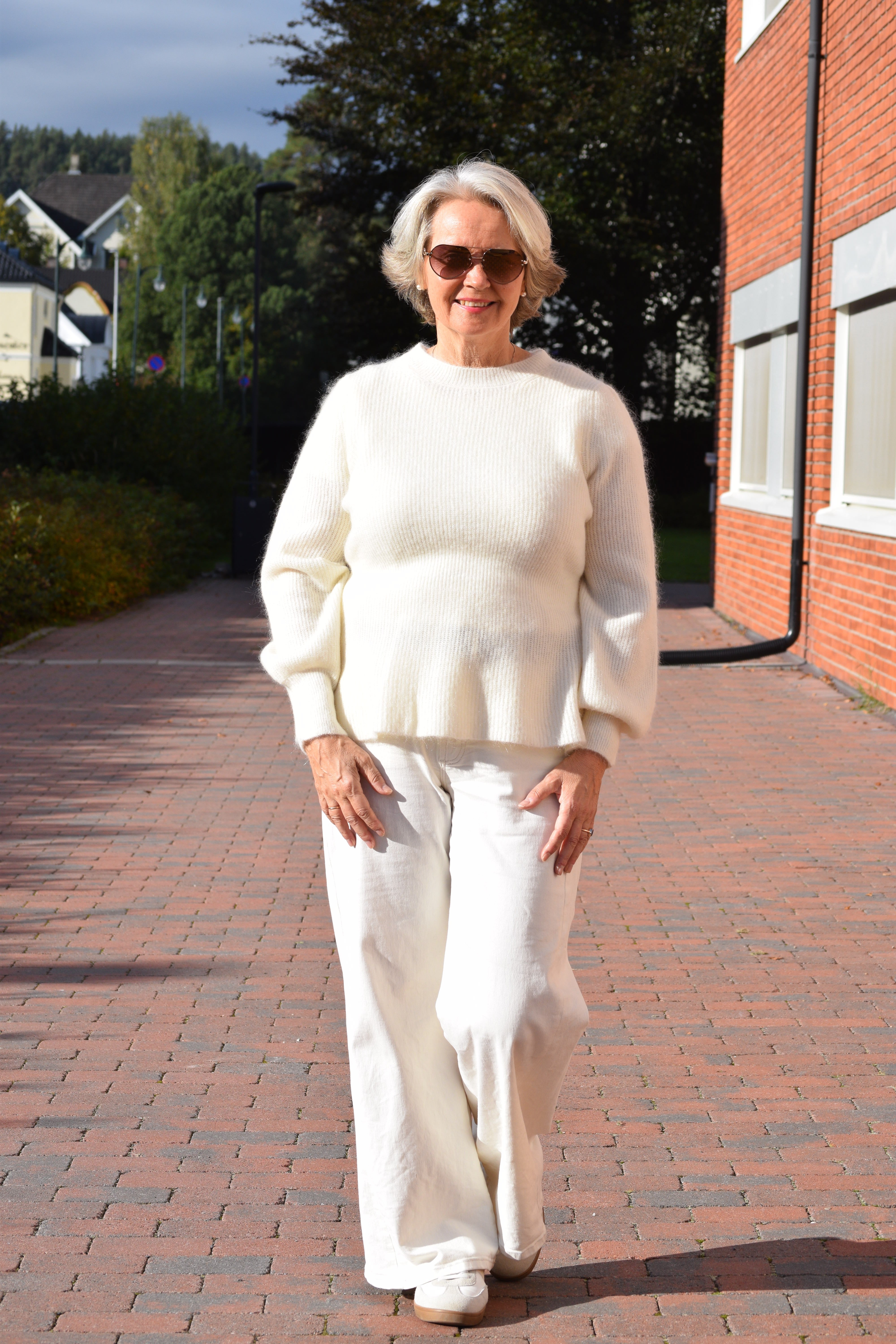 Det innsvingede snittet fremhever midjen, mens de lett puffede ermene og ribbestrikkede mansjettene gir en elegant og moderne finish. En perfekt genser for deg som ønsker et sofistikert uttrykk med komfort i fokus.