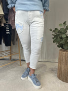 Jeans m/patch - White