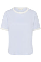 Klassisk T-skjorte med rund hals og kontrastfarget ribbekant i hals og på ermer.Den rette passformen og myke kvaliteten gjør den deilig å ha på. Perfekt som baseplagg i garderoben. Enkel å style med en jeans , eller under en blazer.