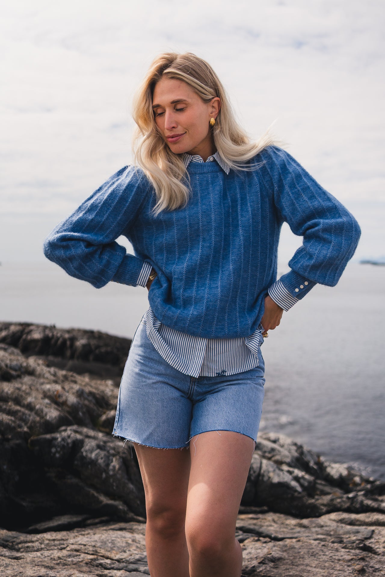 Amalie Puff Pullover er en nydelig strikk fra Raus, og et must-have plagg i garderoben! Den har feminine detaljer og kommer i en vakker blåfarge som gir et friskt og elegant uttrykk. Genseren er strikket i en myk ullblanding med ribb-kanter og et delikat mønster som gir den et unikt uttrykk. Den har rund hals, mansjetter med dekorative knapper og en avslappet passform. En superfin base i klesskapet som kan kombineres til bukser, skjørt eller kjoler