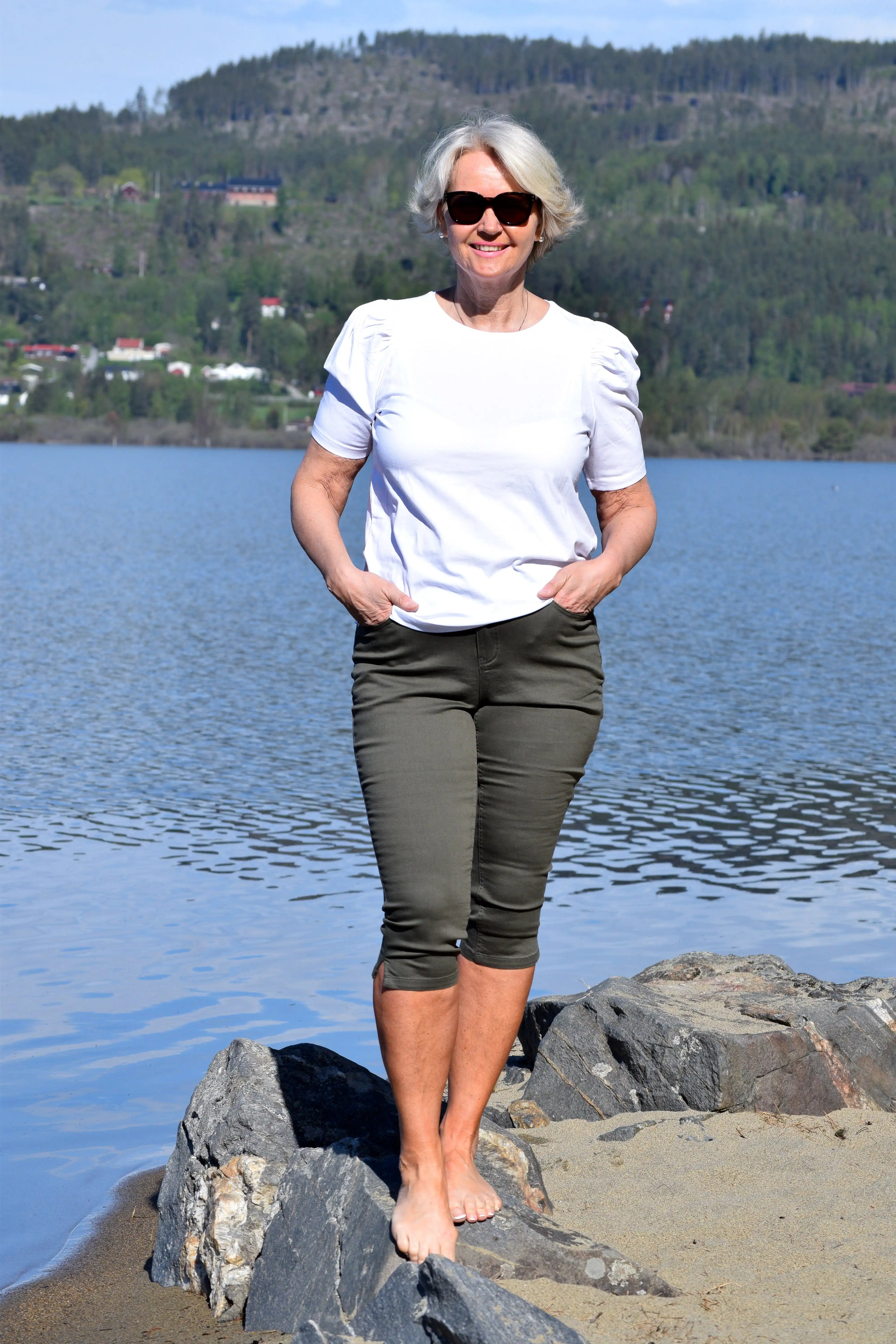 Enkel og god capri med høyt liv. Masse stretch! Den passer alle kroppsfasonger. Liten splitt i siden som ikke gjør den trang.