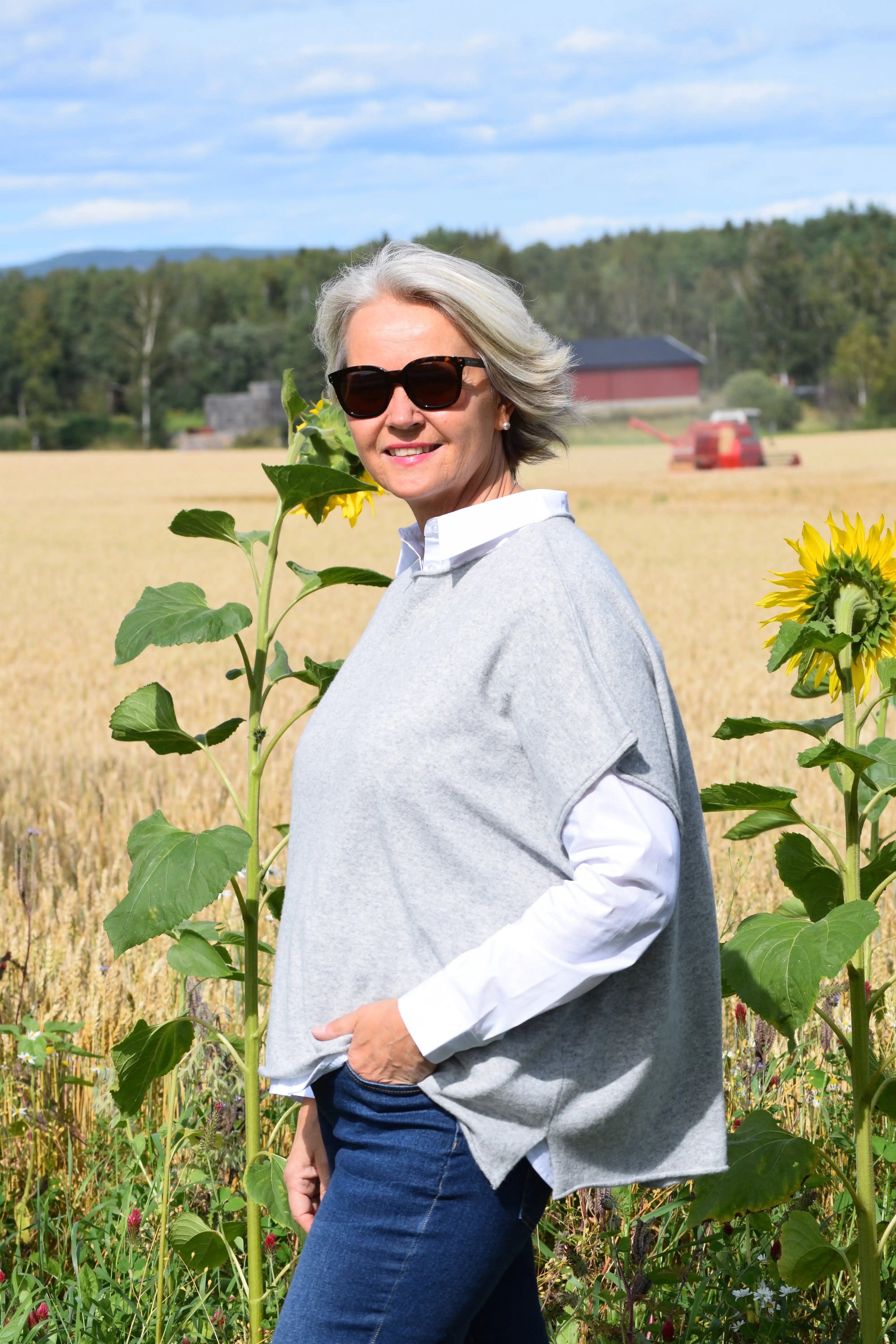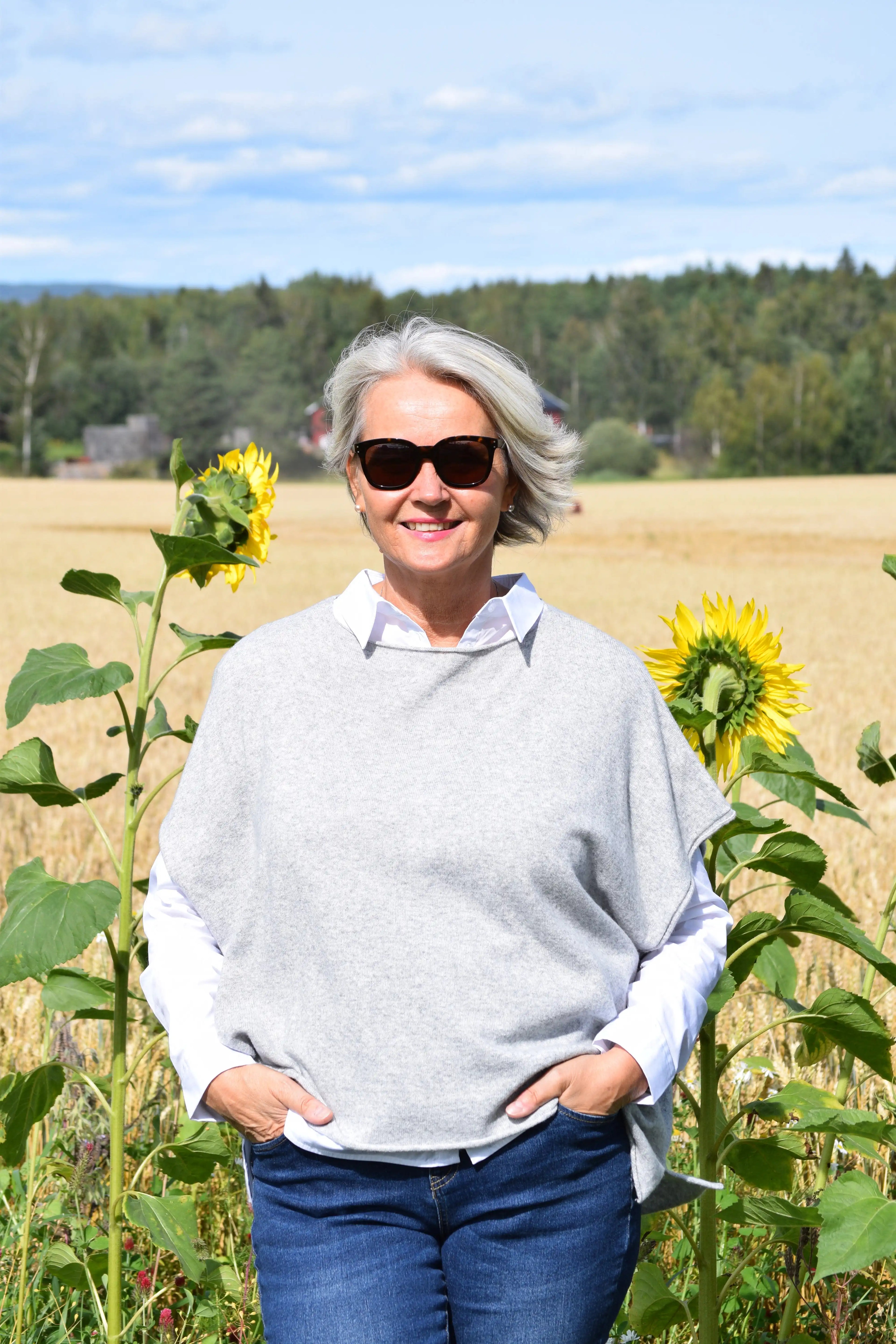 Colette poncho er en overdel som kan brukes på mange måter. Du kan ha den over kjoler/skjorter, og du kan bruke den som genser. Den er litt lengre bak enn foran.
